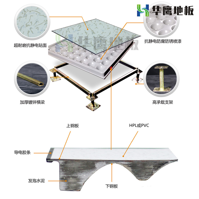 產品特點:進口導靜電pvc貼面,底面采用hy14拉伸板,中間填充發泡水泥,四周導靜電嵌條鑲邊